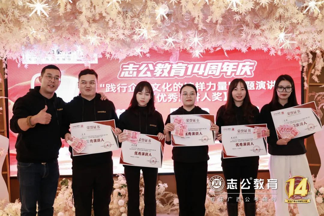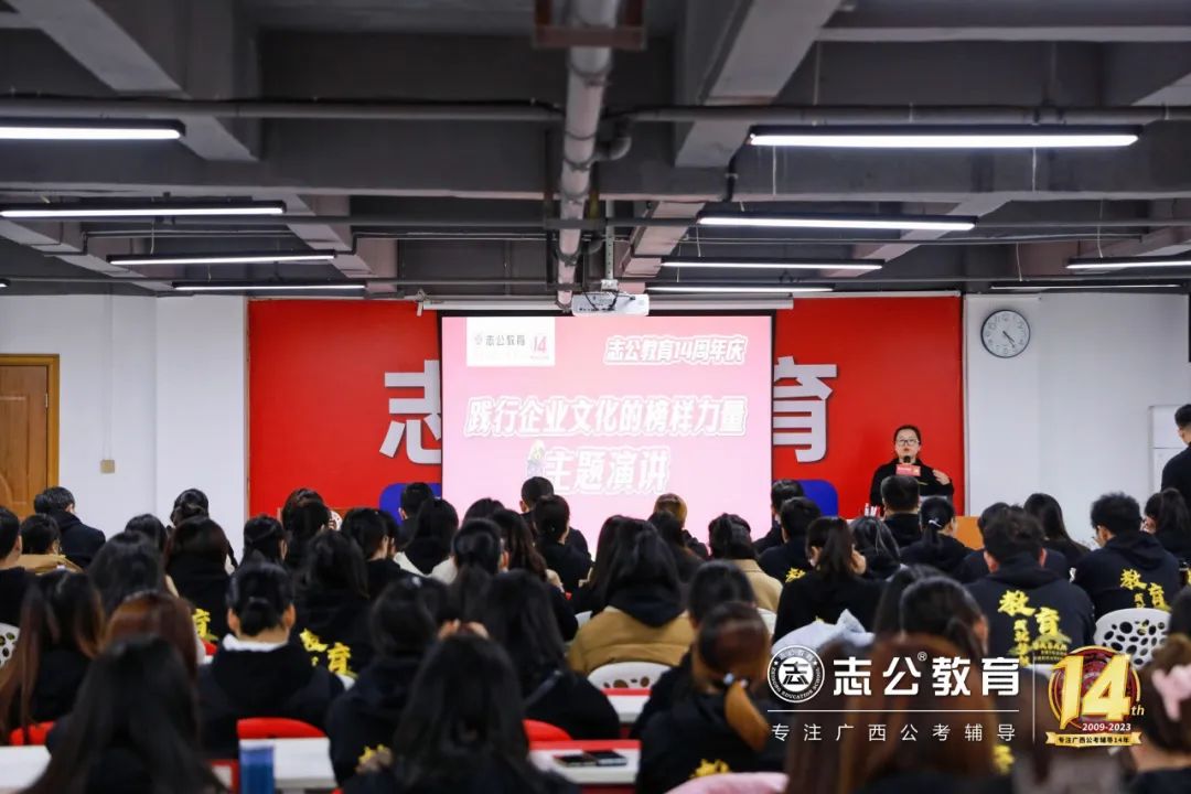 一直以來,志公教育都秉承著“12條企業文化核心價值觀”,包括客戶原則——以學員為中心”、“管理原則——人人都是經營者”等12項原則,扎根廣西本土公考,全力服務每一位志公學員。在董事長李勇的正確領導下,在廣大學員的支持下,在全體員工的共同努力下,志公教育從無到有,從小到大,不斷夯實發展基礎,贏得了客戶的信賴和品牌形象。全體志公人將堅定目標齊奮斗、凝心聚力再出發,為志公高質量發展再立新功。