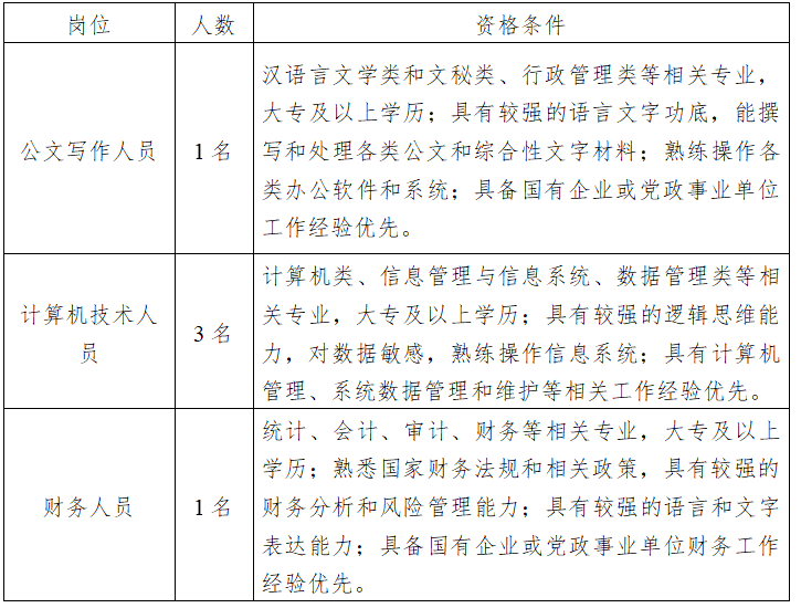 因工作需要,欽州市住房保障中心現面向社會公開招聘公文寫作人員、計算機技術人員、財務人員等崗位共5人,聘用后安排到欽州市住房保障中心相關股室工作,現將有關招聘事項公布如下: