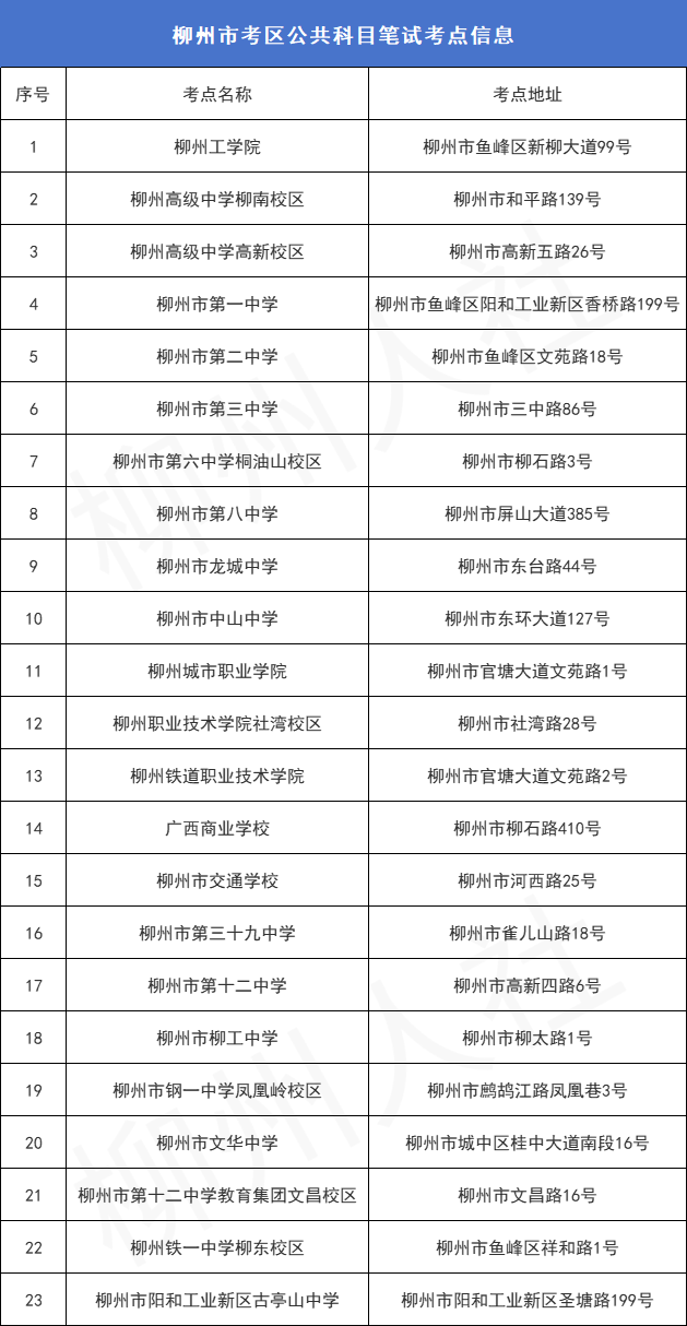 考生注意!2024年柳州公務員考試考場分布!