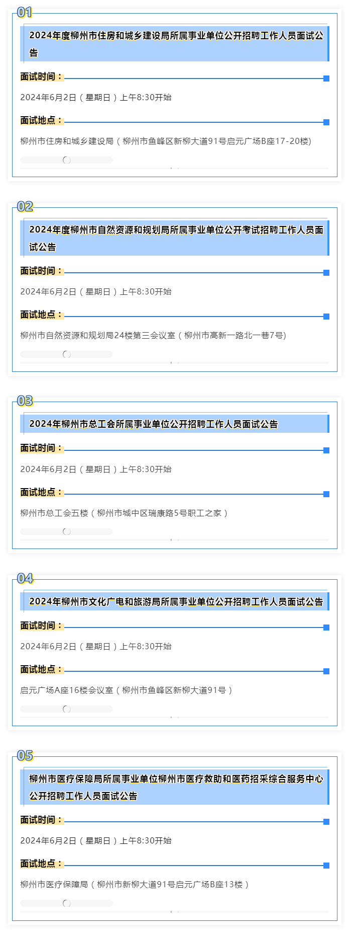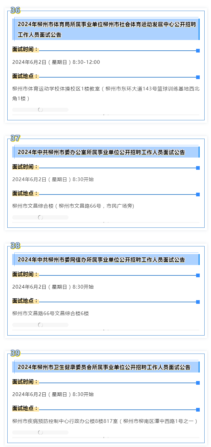 原文標題:本周末面試!時間、地點要看好!2024年柳州市事業單位公開考試招聘面試注意這些↓