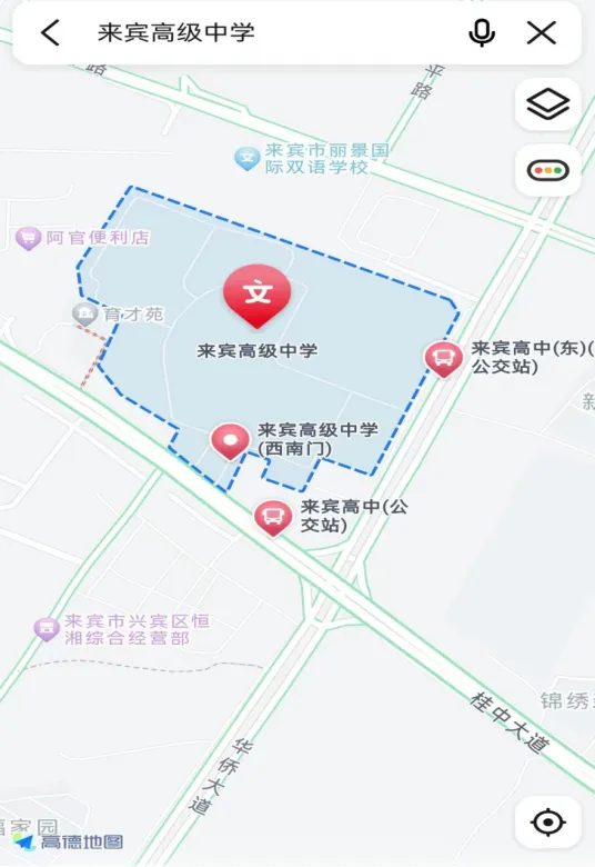 ▲來賓高級中學交通指引圖(來賓市興賓區桂中大道588號)。