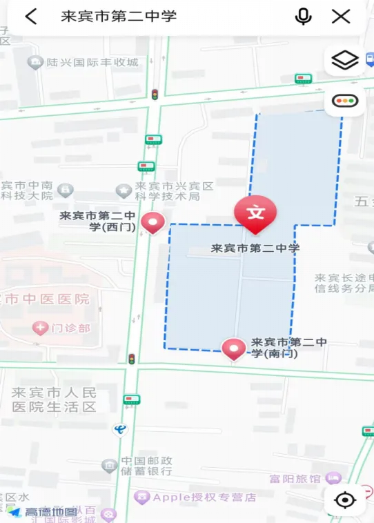 ▲來賓市第二中學交通指引圖(來賓市興賓區北四路62號)。