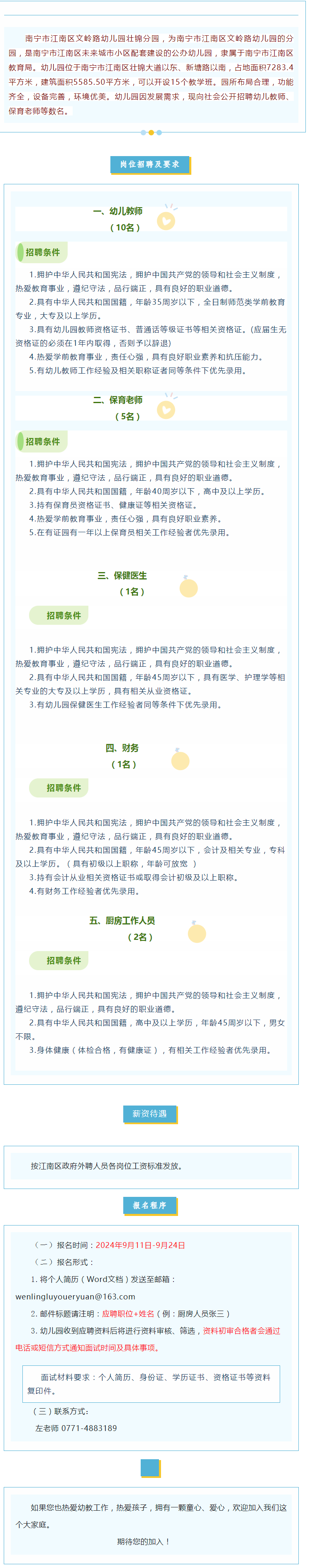 原文標題:南寧市江南區文嶺路幼兒園壯錦分園?招聘公告