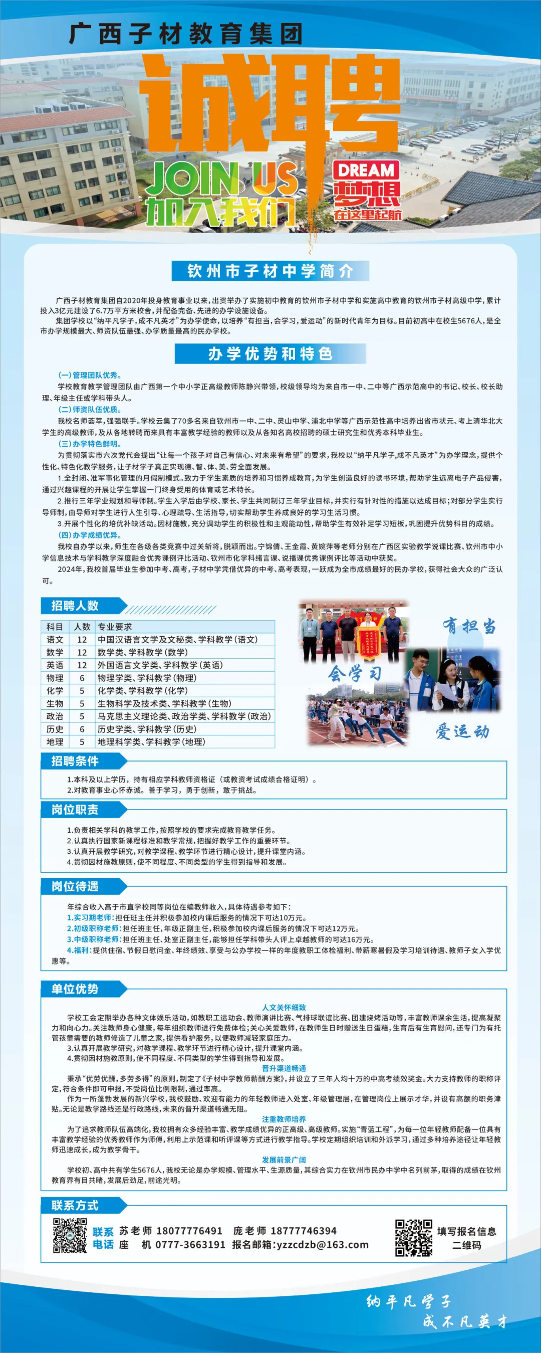 欽州市子材中學(xué)2025年教師招聘計劃