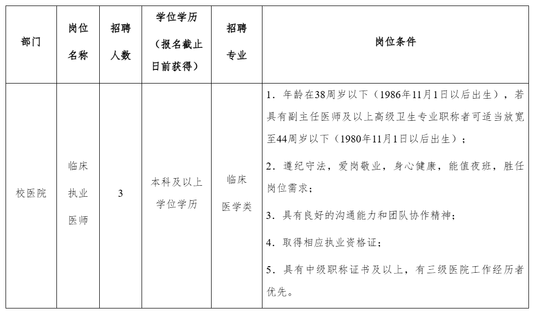 擬公開招聘醫務工作人員3名,具體崗位及相關條件要求詳見下表: