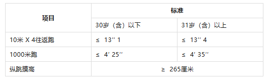 報考人員須參加全部三項體能測評。參加者凡有其中一項不達標或放棄,視為體能測評不合格。體能測評合格,方可進入下一環節。