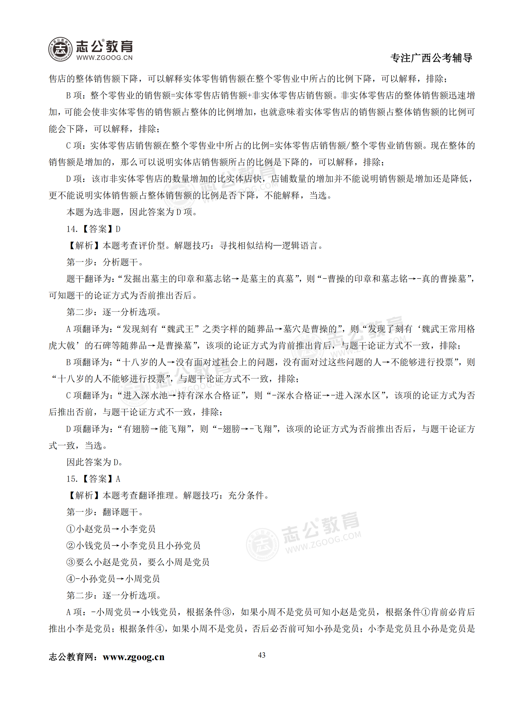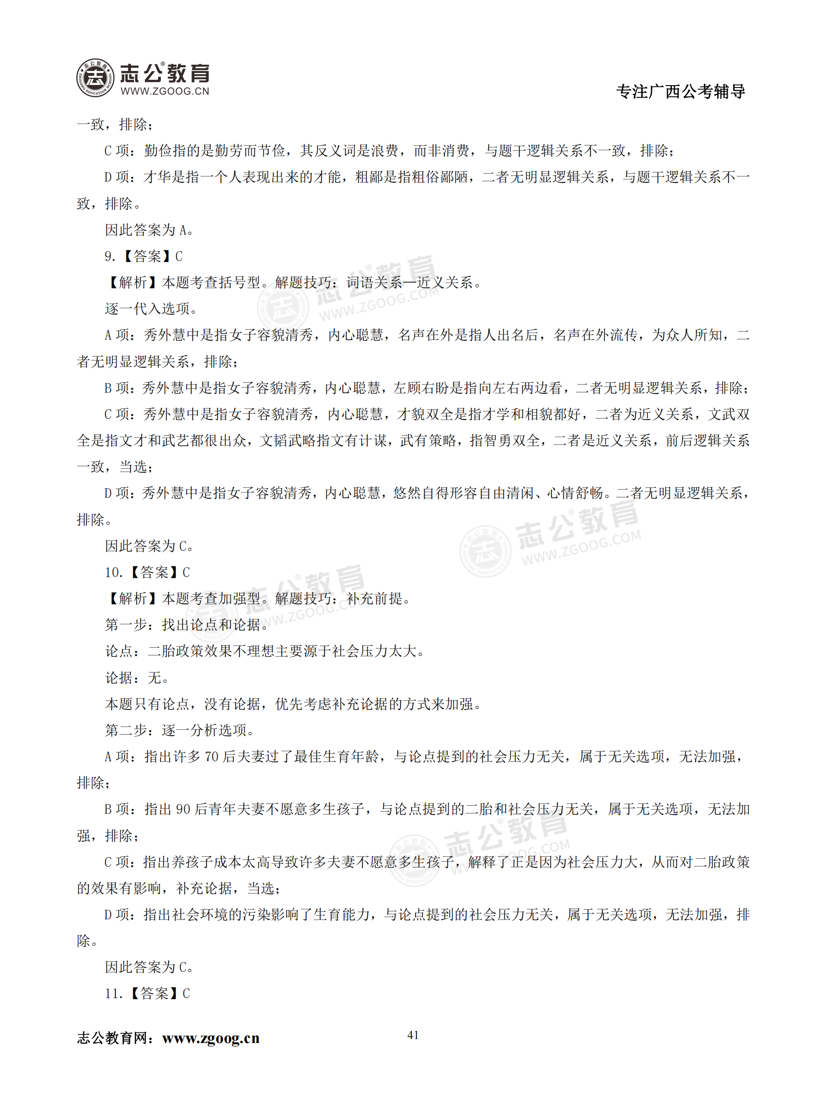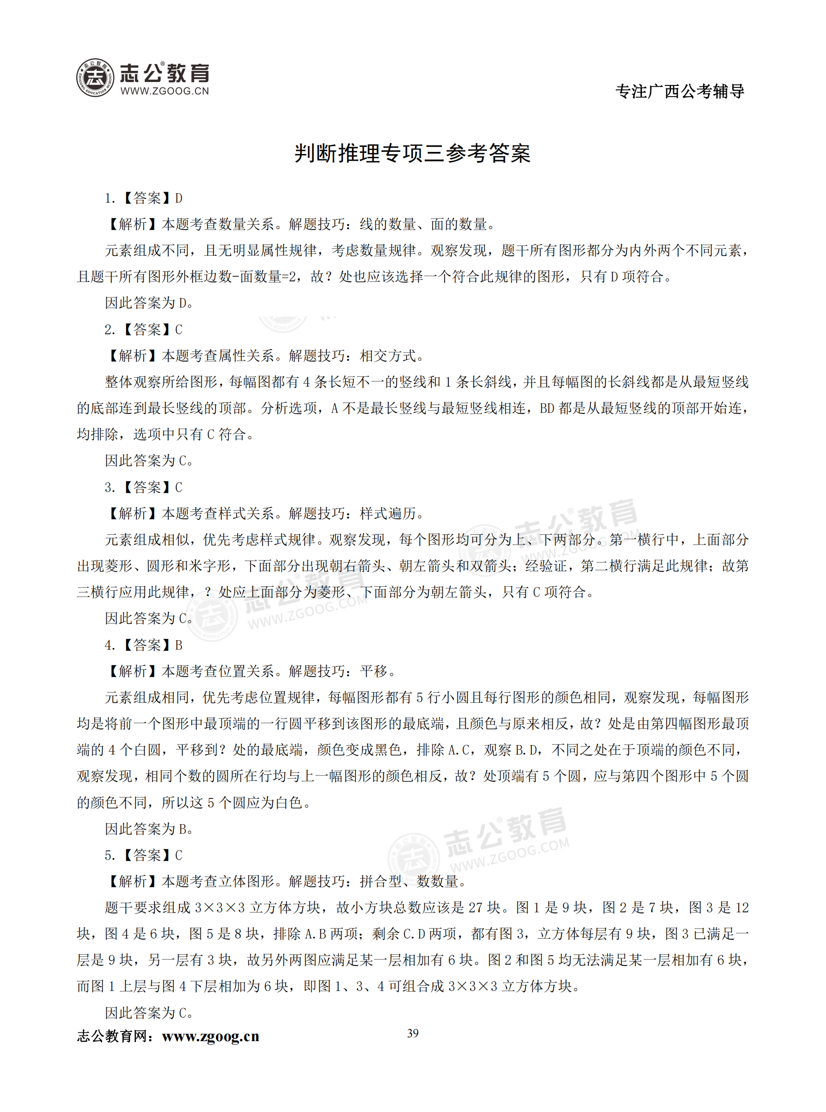 【公考模塊練習】判斷推理題三(答案)