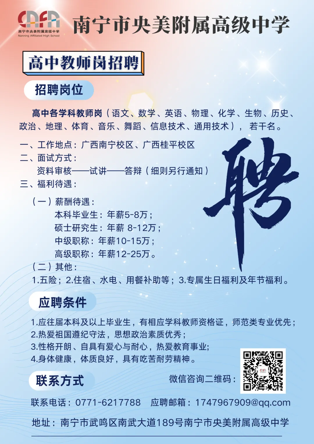 2025年南寧市央美附屬高級中學教師招聘公告