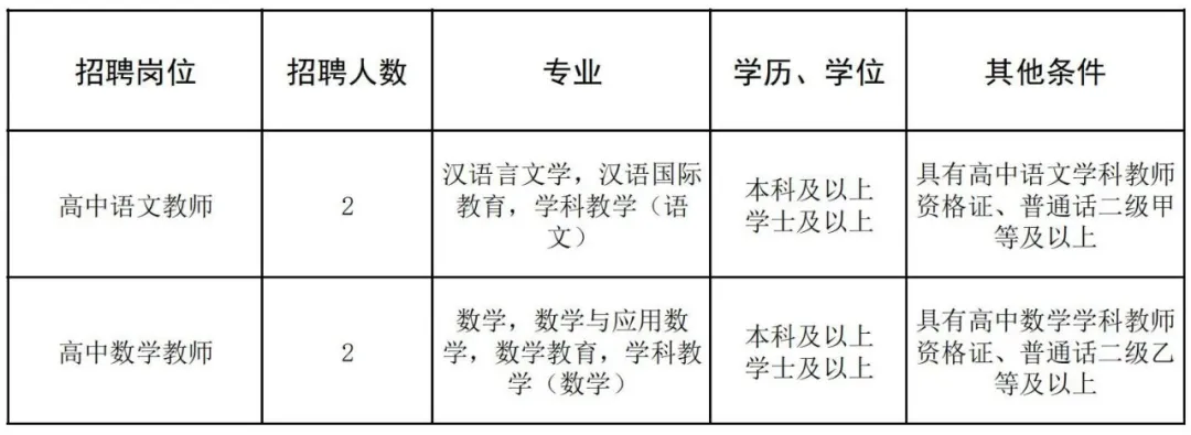 根據發展需要,學校擬招聘高中語文、高中數學頂崗教師共4人,具體招聘信息如下: