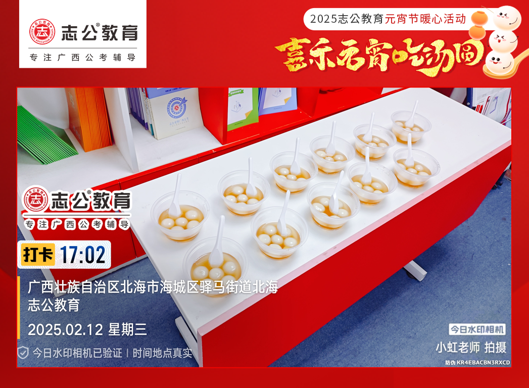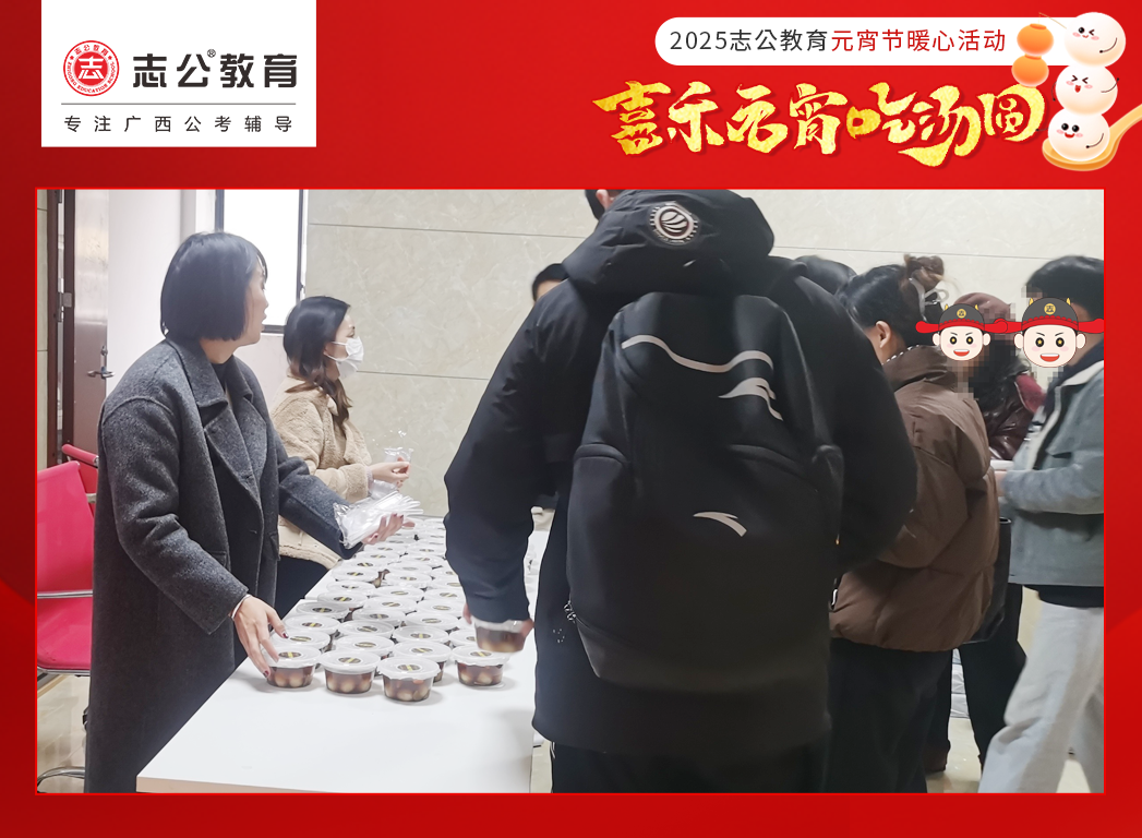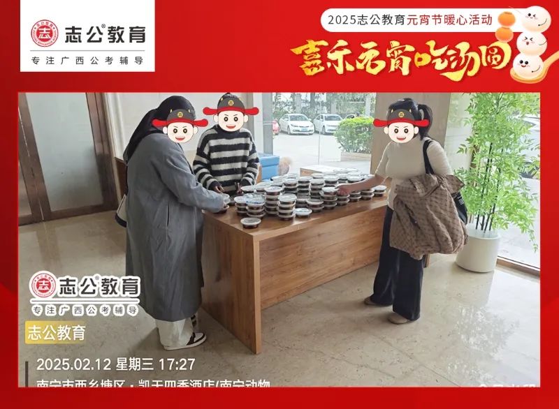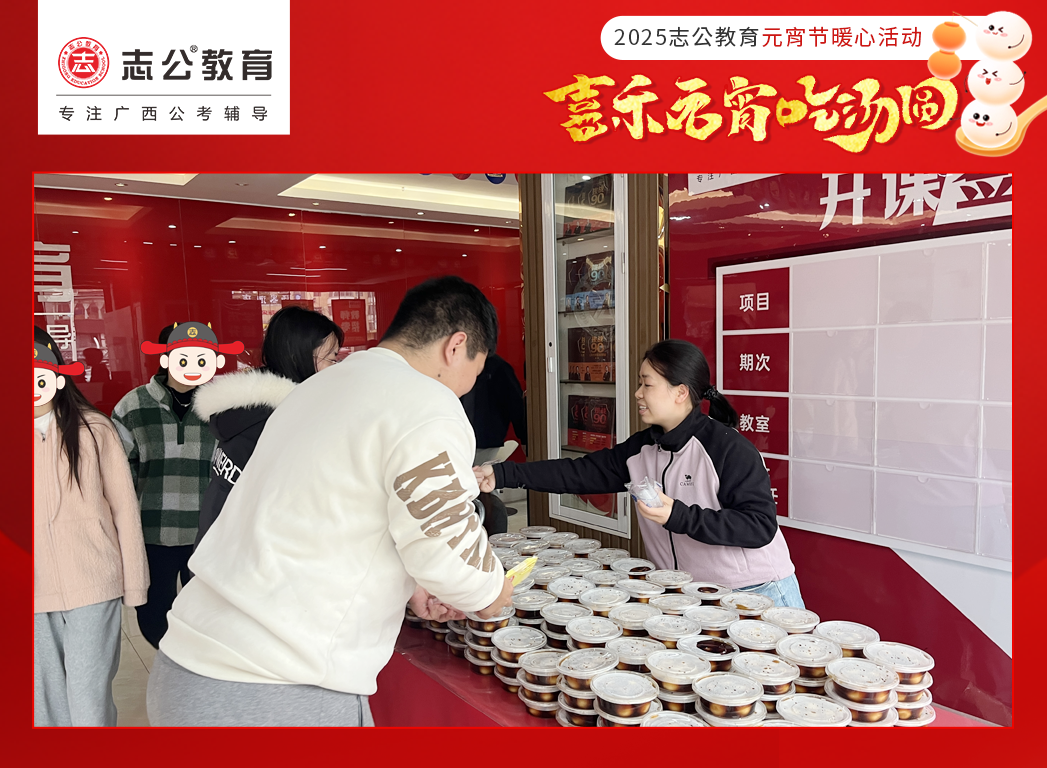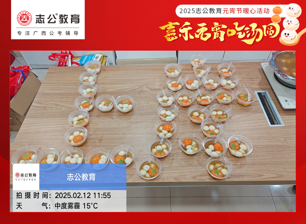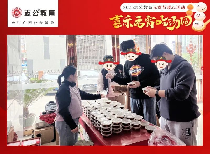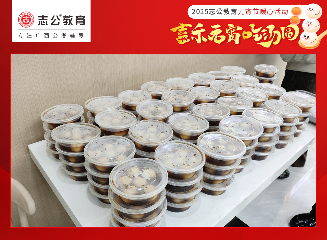 元宵節(jié),作為中國的傳統(tǒng)節(jié)日之一,承載著團(tuán)圓、歡樂與美好的祈愿。在這個溫馨的佳節(jié),志公教育也為正在備考的學(xué)員以及公司員工都送上了一份甜蜜驚喜 —— 暖心湯圓,讓每一位小伙伴/學(xué)員都能在忙碌的學(xué)業(yè)/工作之余,感受到濃濃的節(jié)日氛圍與志公教育關(guān)懷。