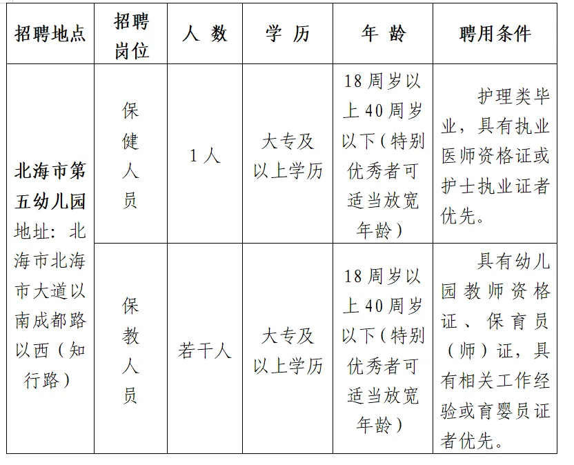 (二)報名方式:符合條件的報考人員請在報名期間將報名表發(fā)至北海市第五幼兒園郵箱:bhswy@beihai.gov.cn,郵件主題為“報名應聘崗位+姓名”。