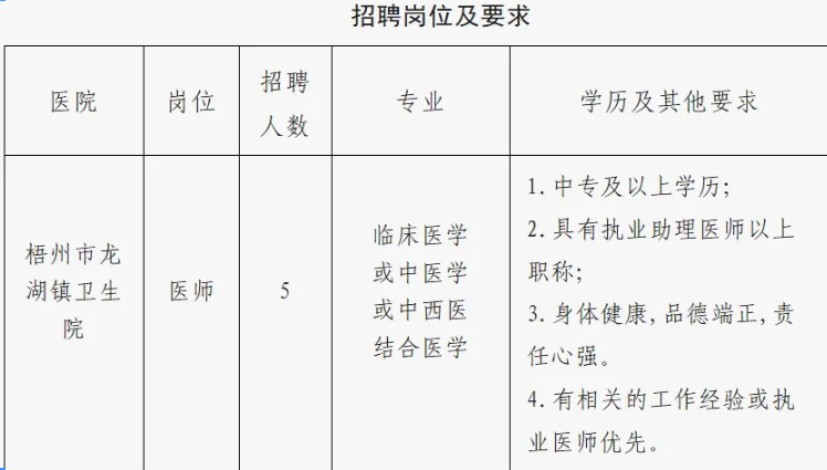 2025年梧州市龍湖鎮衛生院招聘醫生5名