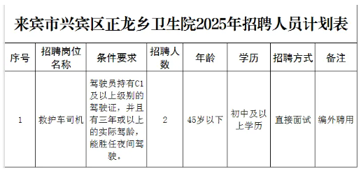 原文標題:來賓市興賓區正龍鄉衛生院2025年公開招聘編外人員公告