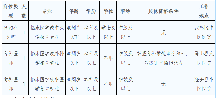 2.具備崗位所需的專業、職稱及執業醫師資格;