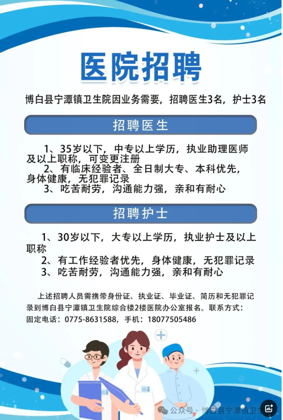 原文標題:博白縣寧潭鎮衛生院誠聘英才