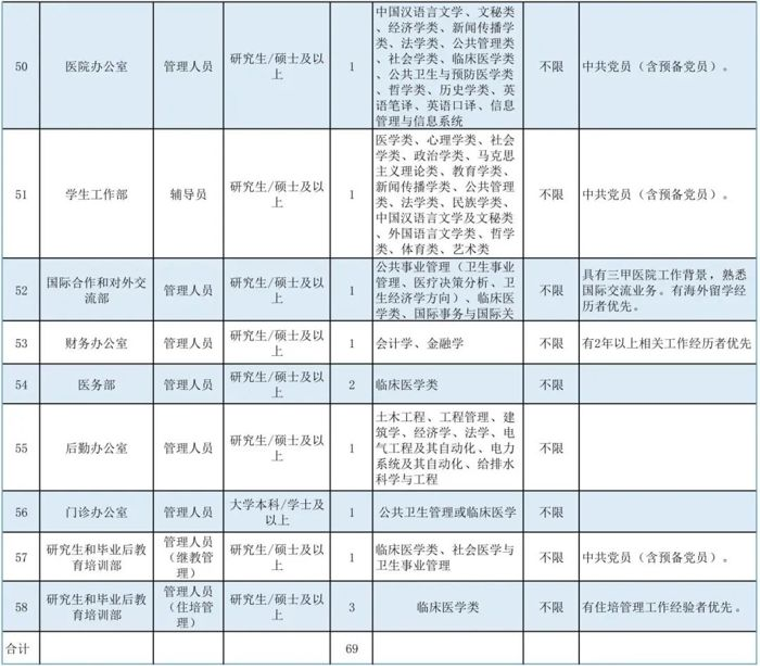 根據我院人才及學科發展需要,現面向社會招聘醫生、技師、護理、行政管理及科研等崗位人才69名,具體如下: