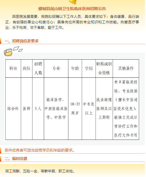 原文標題:柳城縣鳳山鎮衛生院臨床醫師招聘公告