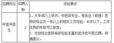 我院因業務發展需要,決定面向社會公開招聘中醫科醫生2人,現將有關事項公告如下: