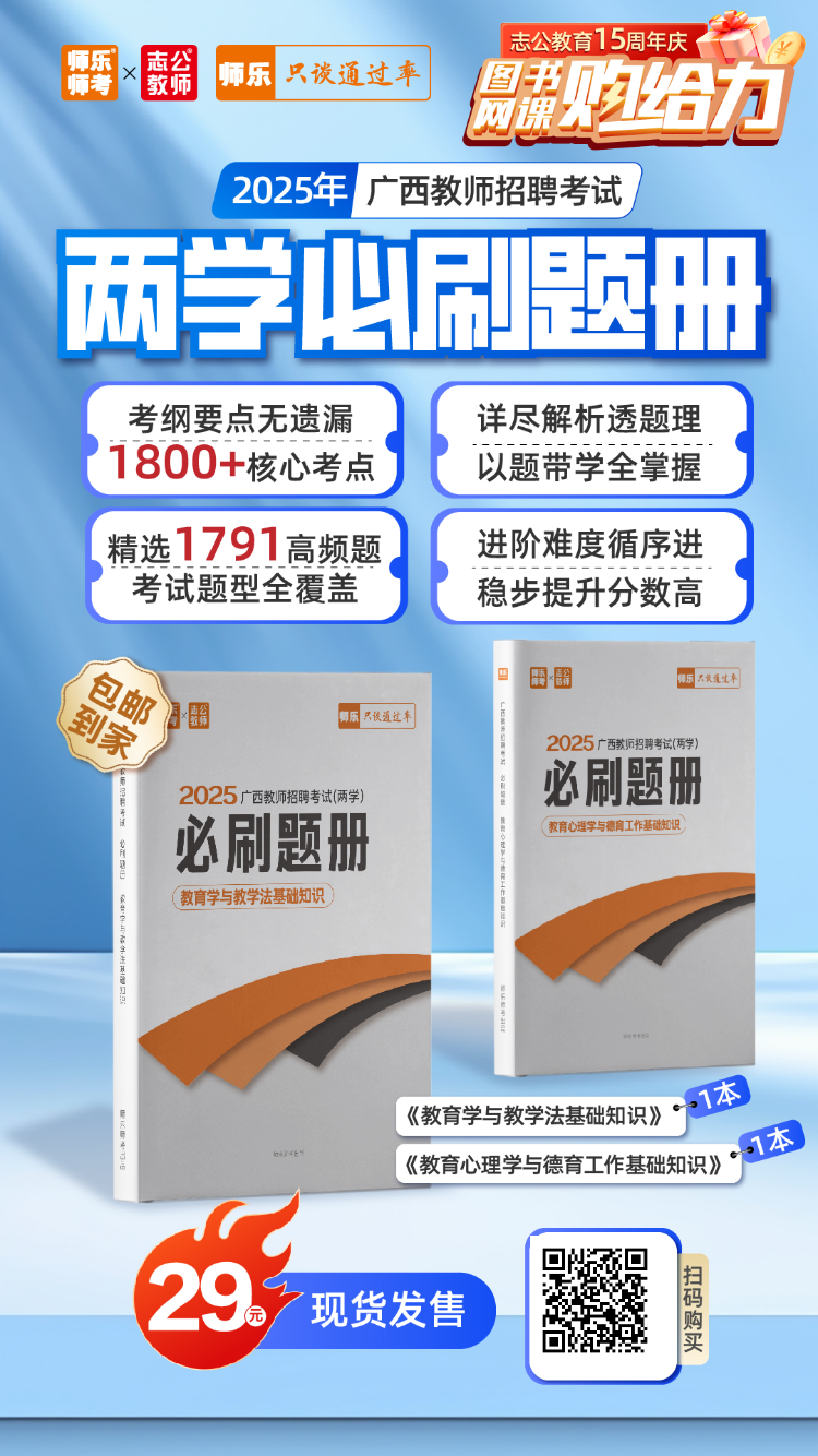 原文標題:2025年廣西教師招聘考試兩學必刷題!特崗/桂林筆試必刷!