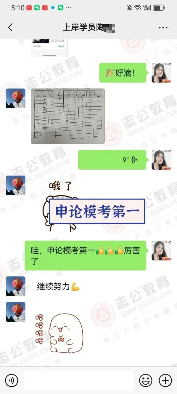 申論模考中榮獲了第一名,這是他努力學(xué)習(xí)的最好證明!我對(duì)他說:“天道酬勤,你不上岸誰上岸!”