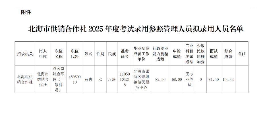 原文標題:北海市供銷合作社2025年度考試錄用參照管理人員擬錄用人員公示