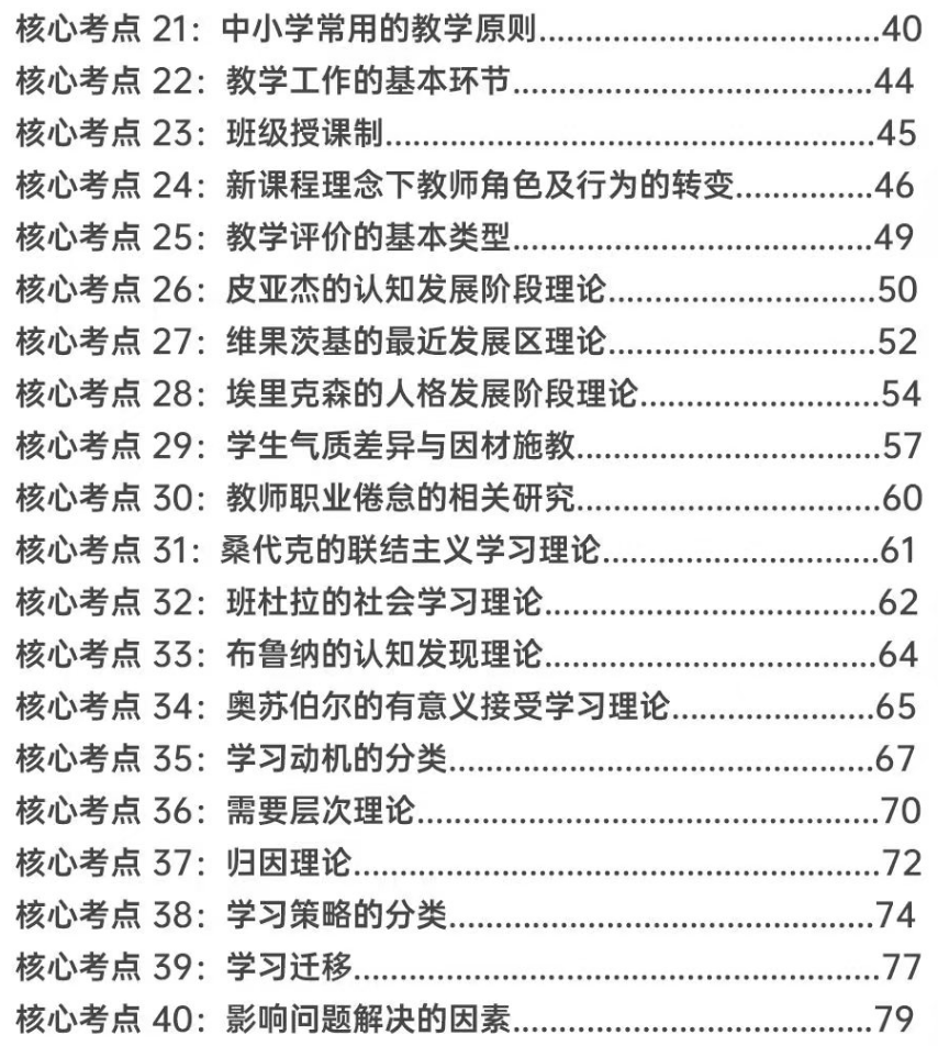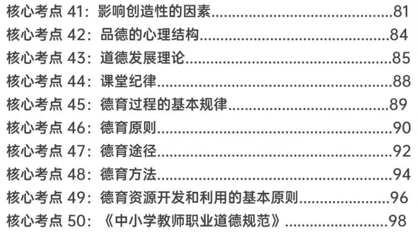 匹配考綱要求,精選50個核心考點:銘師組團精研,基于考綱收錄《教育學與教學法基礎知識》《教育心理學與德育工作基礎知識》核心考點,重點突出,幫助考生學習記憶。