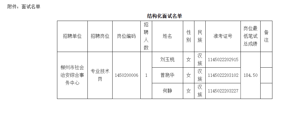 2.面試崗位:柳州市社會治安綜合事務中心專業技術崗