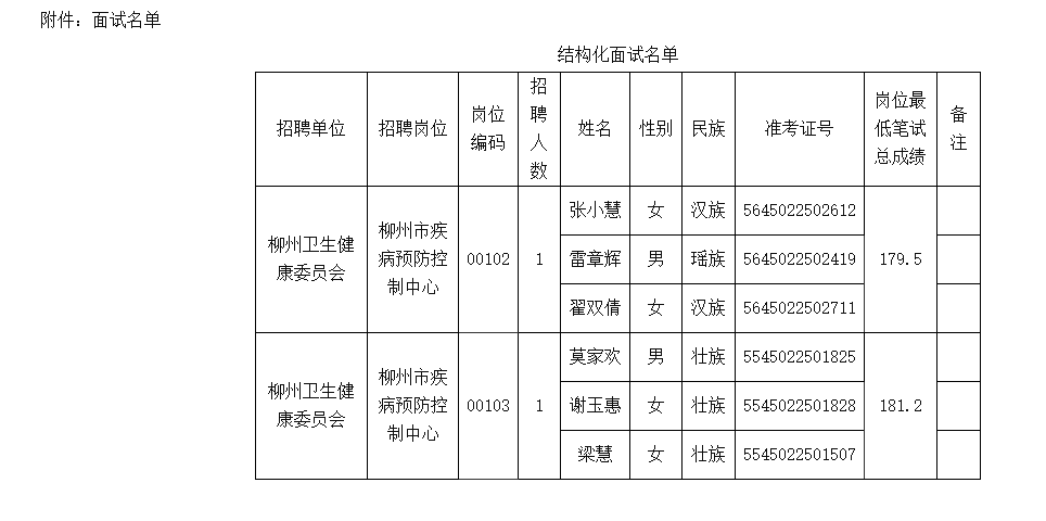 2.面試崗位:詳見附件《2025年柳州市衛生健康委員會下屬事業單位公開招聘工作人員面試人員名單》