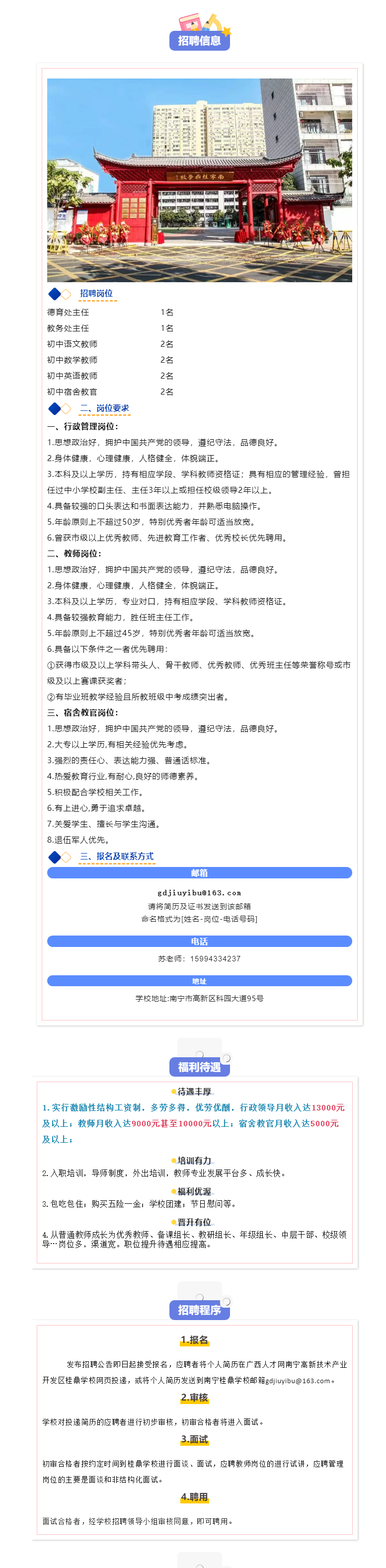 南寧桂鼎學(xué)校2025年九義部教師招聘啟事