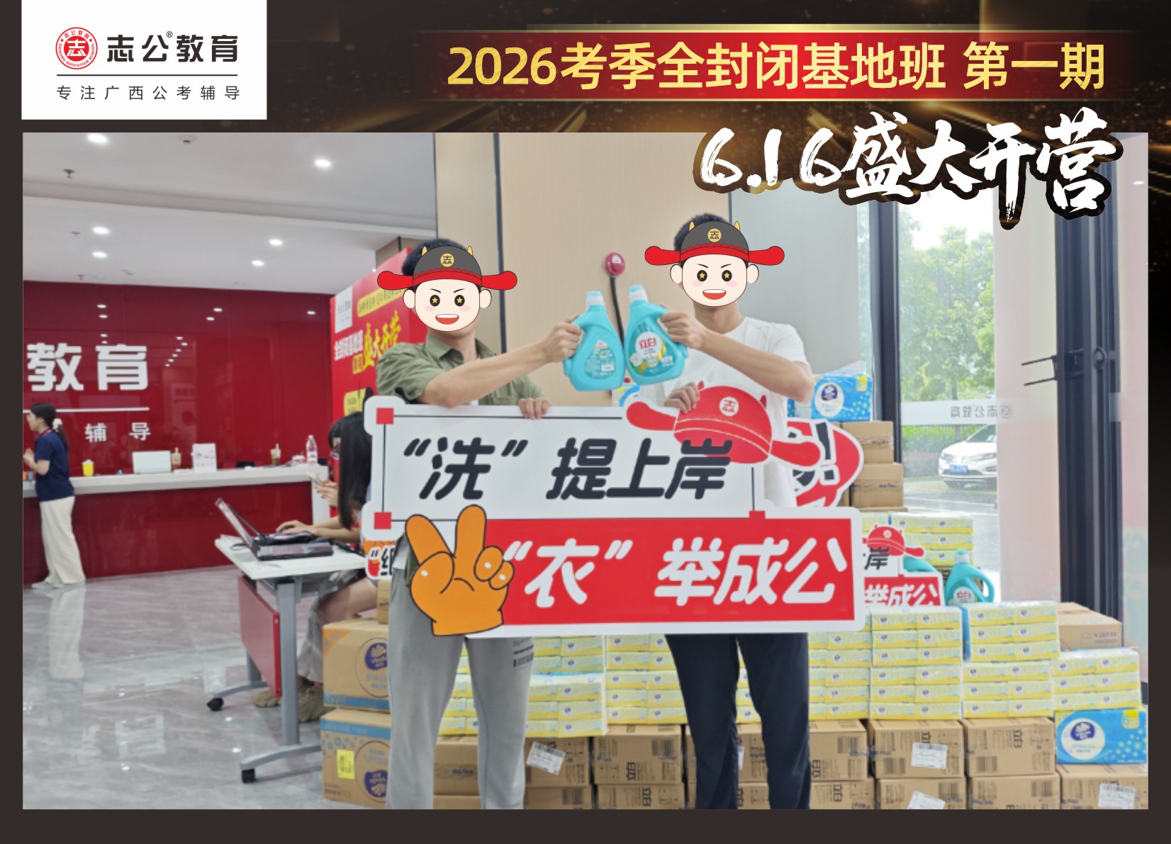 6月16日,志公教育基地班在萬眾翹首以盼中,正式拉開帷幕!來自各地的學員們,懷揣著夢想與憧憬匯聚于此,以“躍龍門”的非凡勇氣和“走紅毯”般的自信姿態,鄭重地書寫下屬于自己的“上岸心愿”。在這場充滿儀式感與溫馨氛圍的啟程儀式中,開啟了新篇章。