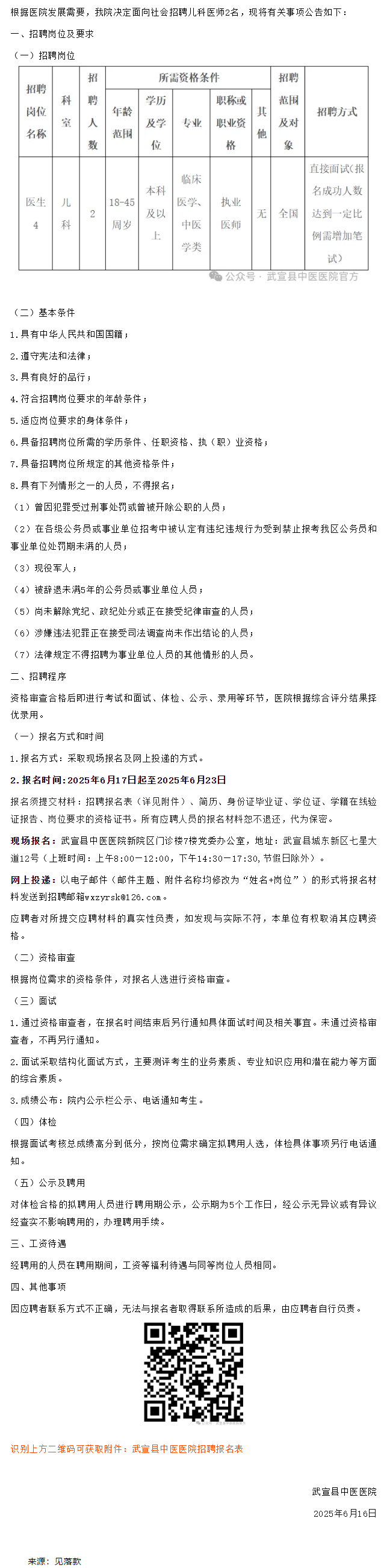 原文標題:武宣縣中醫醫院2025年公開招聘編外聘用人員公告(第一期)