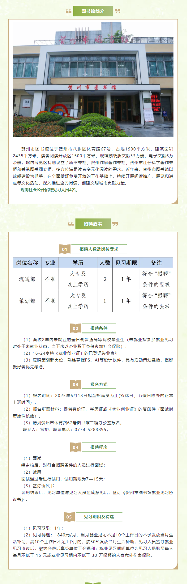 原文標題:2025年賀州市圖書館招聘見習崗位,歡迎您的到來!