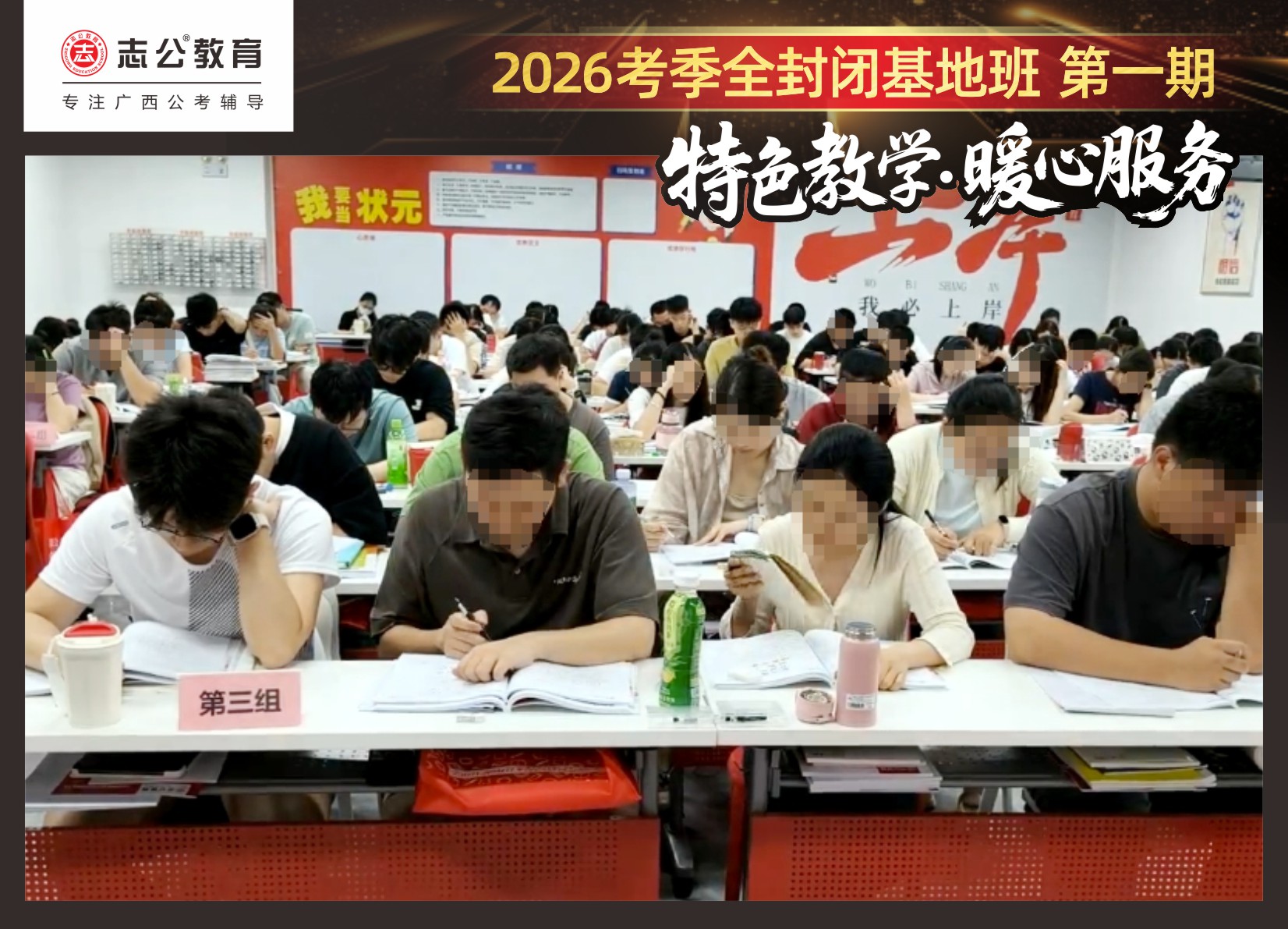 近日,志公教育基地班正式開課后,學(xué)員們?nèi)孢M(jìn)入緊張而有序的封閉式備考狀態(tài)。為確保每一位學(xué)員都能在最佳狀態(tài)下高效備考,志公教育不僅提供了優(yōu)質(zhì)的教學(xué)資源和師資團(tuán)隊(duì),更從住宿環(huán)境、飲食健康、學(xué)習(xí)空間、紀(jì)律監(jiān)管、心理關(guān)懷、激勵(lì)機(jī)制等多個(gè)維度出發(fā),精心打造了一系列保障措施,確保每一位學(xué)員都能在最佳狀態(tài)下備考,真正實(shí)現(xiàn)“學(xué)得安心、住得舒心、吃得放心”。
