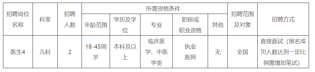 根據醫院發展需要,我院決定面向社會招聘兒科醫師2名,現將有關事項公告如下: