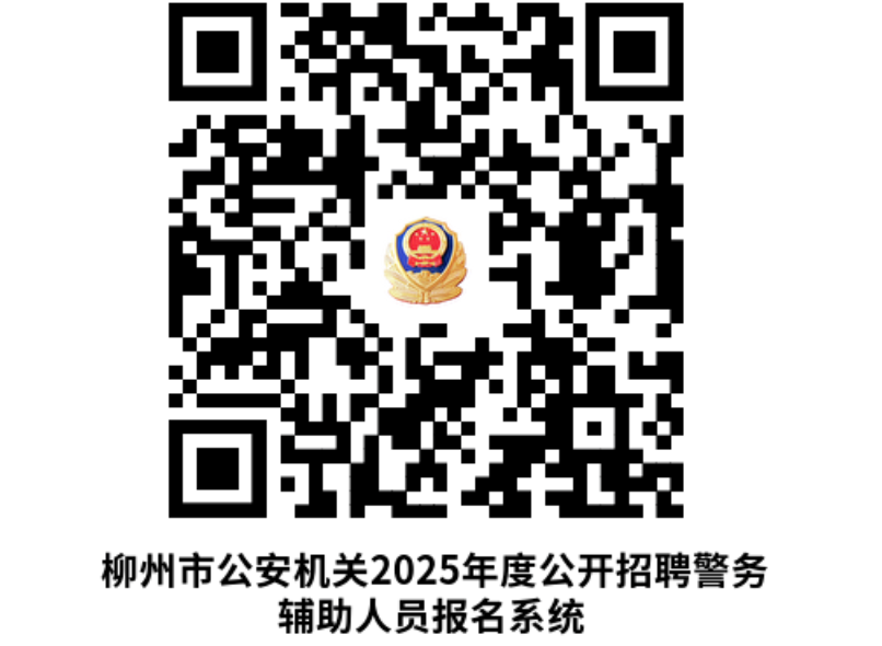 報名方式:通過掃描二維碼進入報名網站報考,考生也可登錄柳州市人力資源和社會保障局網站(http://rsj.liuzhou.gov.cn)或進入“柳州人社”微信公眾號、“柳州警方”微信公眾號關注相關招聘信息進行報考,每人限報一個職位。