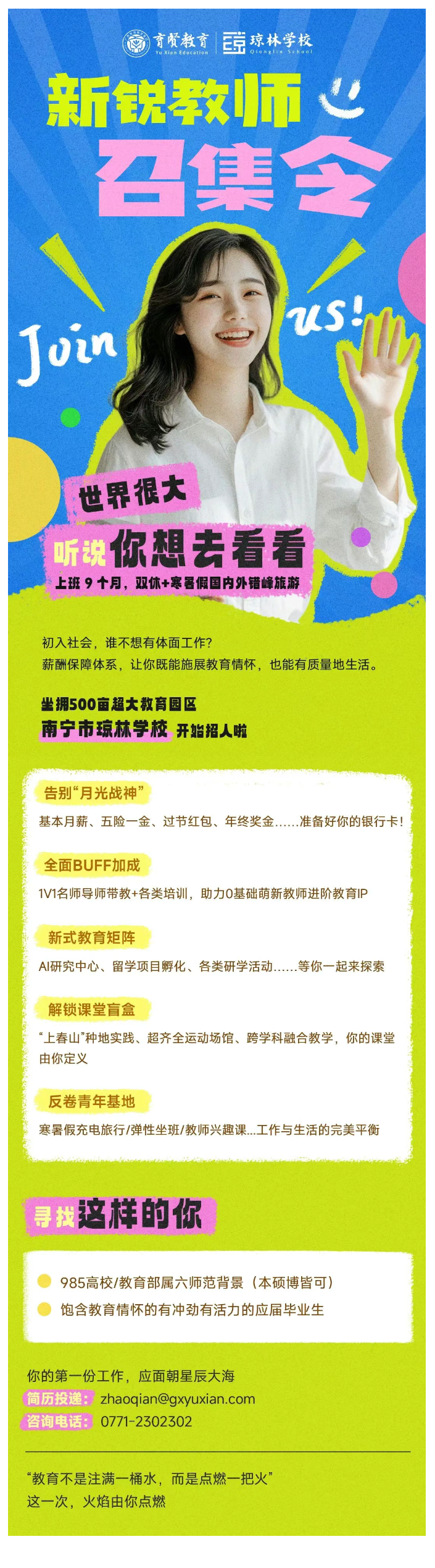 2025年南寧市良慶區瓊林學校新銳教師招聘公告