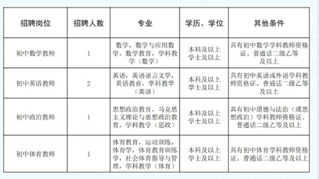 根據發展需要,學校擬招聘初中數學、英語、政治、體育頂崗教師,具體招聘信息如下: