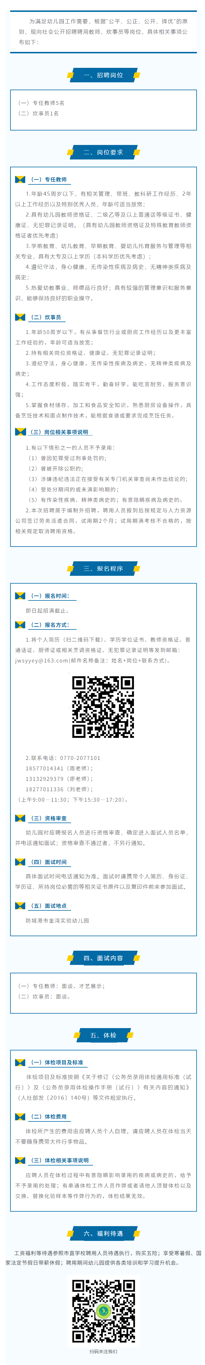 2025年防城港市金灣實驗幼兒園秋季學(xué)期聘用教師、炊事員崗位招聘公告
