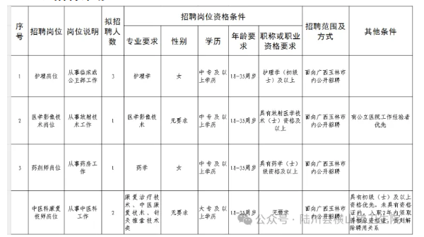 因工作需要,陸川縣橫山鎮衛生院向社會公開招聘編外工作人員。具體招聘事宜如下: