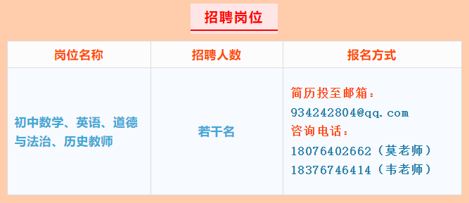 根據(jù)2025年秋季學(xué)期我校教育教學(xué)需要,現(xiàn)向社會公開招聘編外教師。我校擬招初中數(shù)學(xué)、英語、道德與法治、歷史頂崗教師若干名。工資待遇按江南區(qū)政府事業(yè)單位臨時聘用人員工資標(biāo)準(zhǔn):無職稱3100元/月,初級職稱3200元/月,中級職稱3500元/月,高級職稱3700元/月,其他班主任津貼(5元/生·月)、年度績效(1000-1200元/年)和參與學(xué)校管理工作量發(fā)放(有五險一金)。學(xué)校提供免費(fèi)住宿。