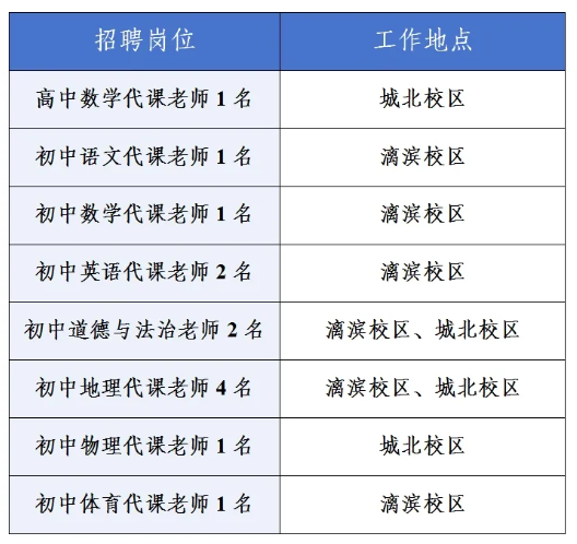 由于學校工作需要,需招聘各科代課老師,公告如下: