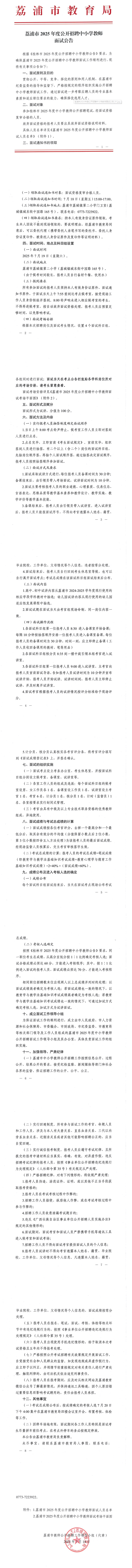 荔浦市2025年度公開招聘中小學教師面試公告