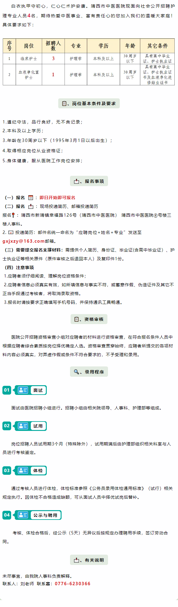 2025年靖西市中醫醫院護理人才(第二批)招聘4人