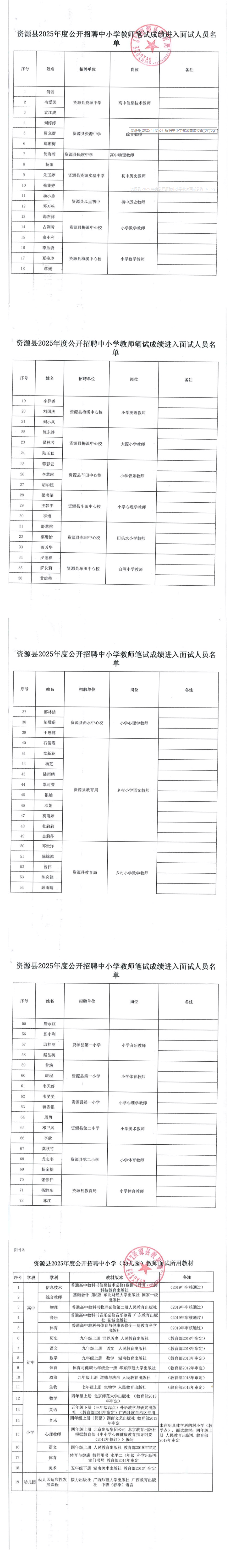 資源縣2025年度公開招聘中小學(xué)教師面試公告