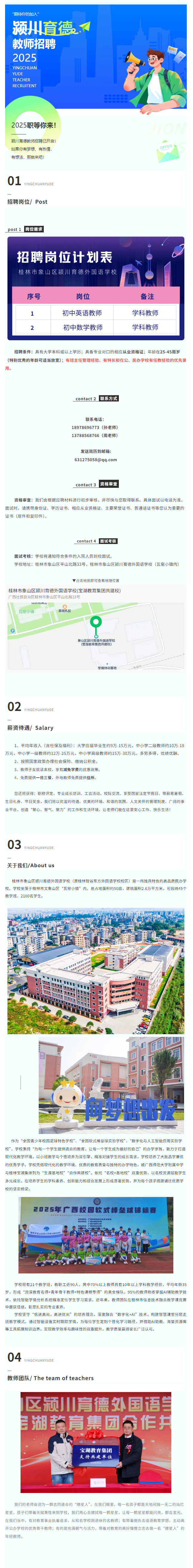 2025年桂林市象山區(qū)潁川育德外國語學校招聘公告