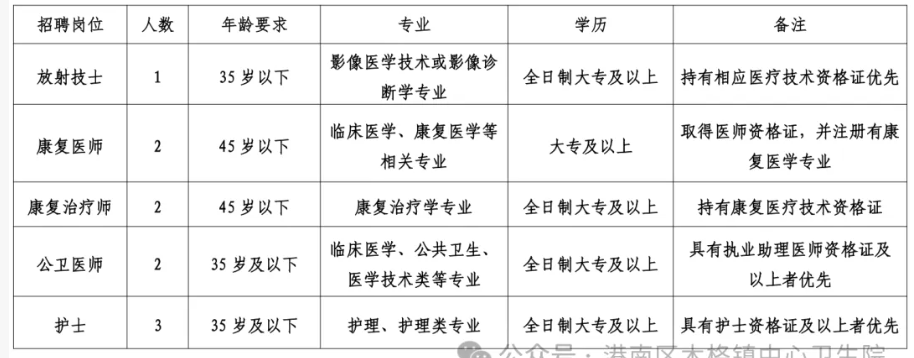2025年港南區木格鎮中心衛生院招聘10人
