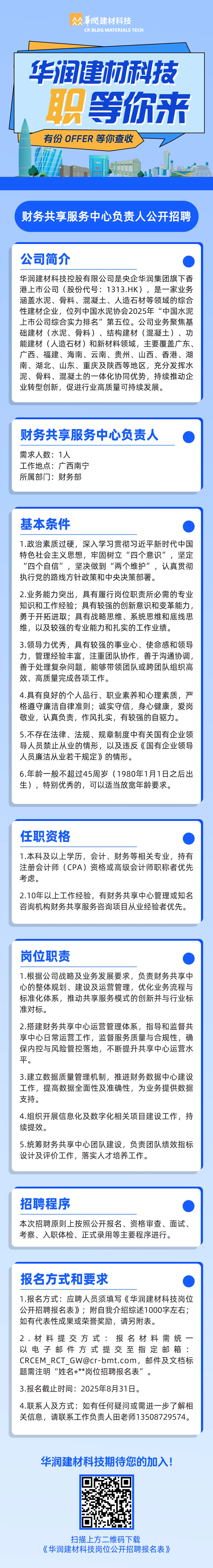 2025年華潤建材科技財務共享服務中心負責人公開招聘公告