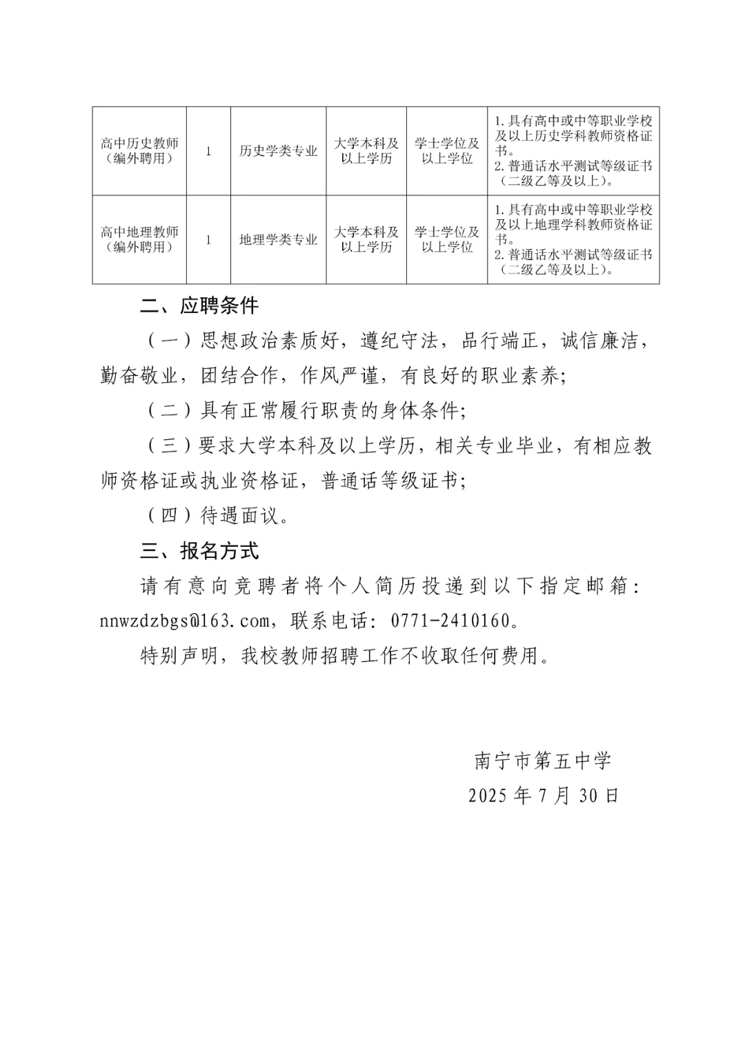 南寧市第五中學(xué)2025年秋季學(xué)期招聘教職工(編外聘用)5人