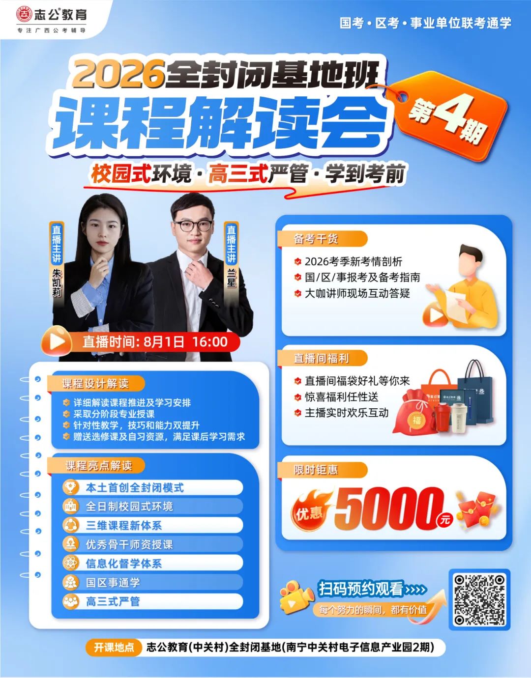 本次解讀會邀請到了朱凱莉、蘭星等資深講師。他們長期深耕公考領(lǐng)域,對廣西的公考形勢了如指掌。在解讀會上,講師們將為大家深度剖析2026考季的新考情、分享報考及備考指南,與同學(xué)們進(jìn)行現(xiàn)場互動,更重要的是進(jìn)行2026年全封閉基地班第4期課程設(shè)計解讀!讓你在備考之初就搶占先機(jī)。????