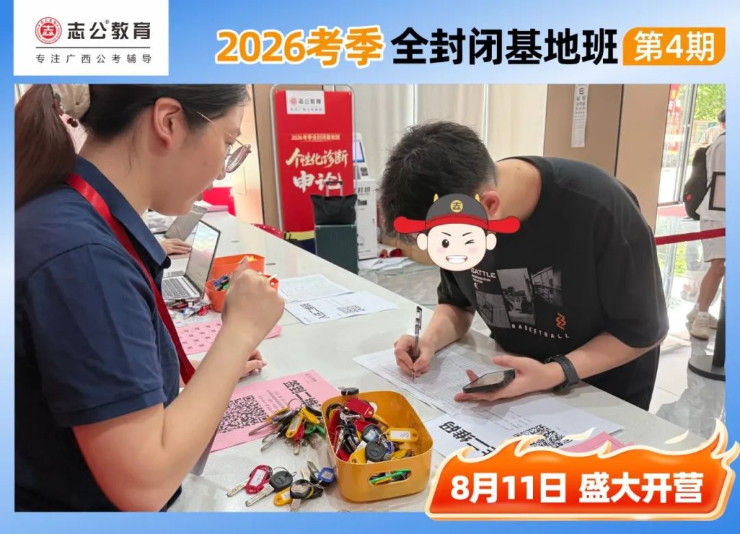 陽光明媚的一天,適合學習,早上10點,志公教育(中關村)全封閉基地的簽到區已經布置妥當,志公的班主任們早早到位,迎接每一位學員的到來。學員們滿懷期待,早早來到基地,為即將到來的學習之旅做好準備。簽到臺前,大家有序排隊,學員們依次領取到宿舍鑰匙、水卡等。班主任們細心核對信息,發放學員證和學習資料,確保每一位學員都能順利開啟接下來的學習生活。